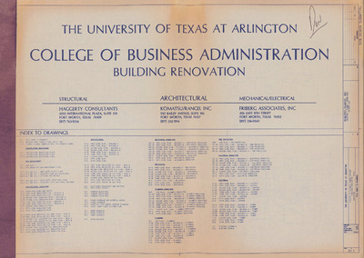 University of Texas at Arlington College of Business Renovation Architectural Plans page G1.1 (cover image) to page A2.2B.