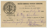 Document from the Western Commercial Travelers' Association stating that two dollars were received in payment of death loss assessment number 54 from Cyrus Moore Dunham. The date stated for the payment is February 13, 1888.