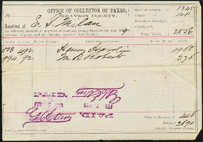 State and county tax receipts for Elisa Milam.