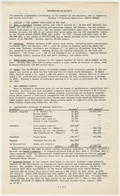 Document containing information on the Safeway food chain such as location, stocks, and table grape buying.