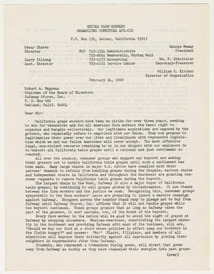 Correspondence from the United Farm Workers Organizing Committee to Robert A. Magowan, Chairman of the Board of Directors of Safeway Stores.