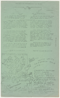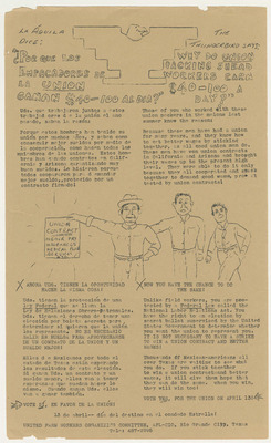 Flyer containing news from the United Farm Workers Association and a poem by Abelardo Rodriguez.