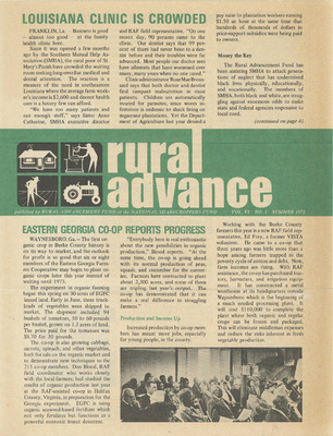 "Rural Advance" magazine published by the Rural Advancement Fund of the National Sharecropper Fund. The magazine was published in the summer of 1972.