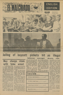 "El Malcriado" newspaper May, 1967 edition. The newspaper contains information for the farm workers that are part of the union such as laws that protect them.