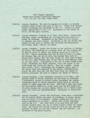 Document from Shirley Swallow, chairman of the Grape Boycott Committee dates September 9, 1969. The document reflects on what the union managed to accomplish during the summer and their shortcomings.