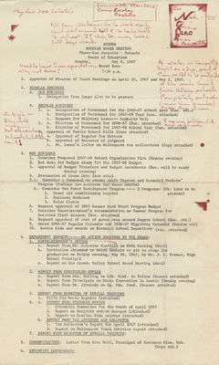Document titled "Agenda Regular Board Meeting Pharr, San Juan, and Alamo Schools Board of Education". The document is dated May 8, 1967.