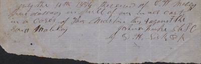 Legal file of a received fee in full from E. W. Moberly on all cases on July 14th 1836.
