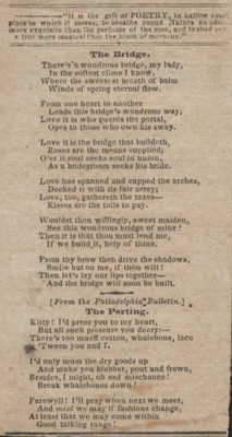 A strip of newspaper featuring two poems. The first poem is called 'The Bridge', and the second poem is called 'The Parting.'