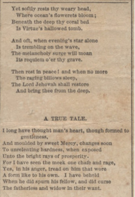 A piece of newspaper featuring 3 poems. One poem is titled 'A True Tale.' The other 2 poems are untitled.