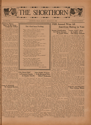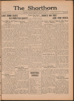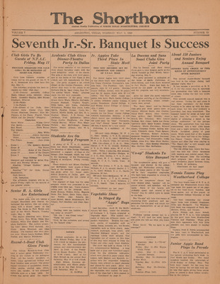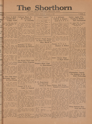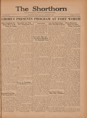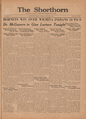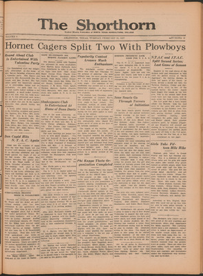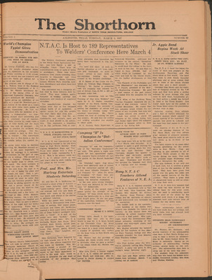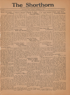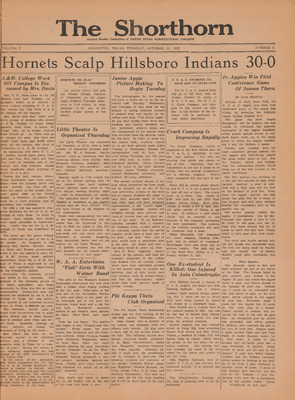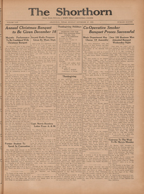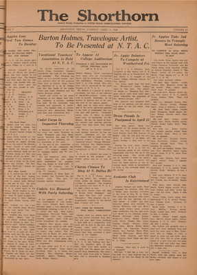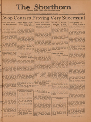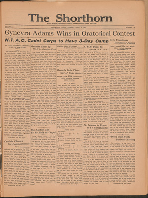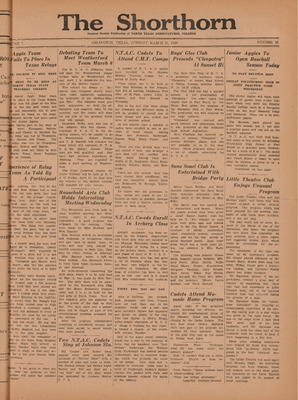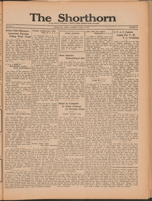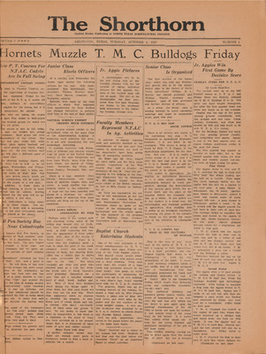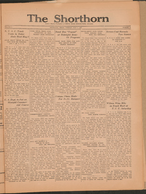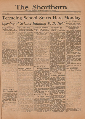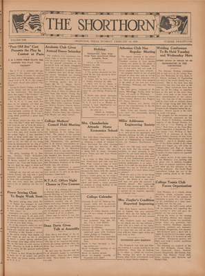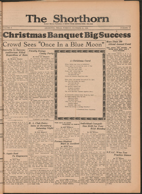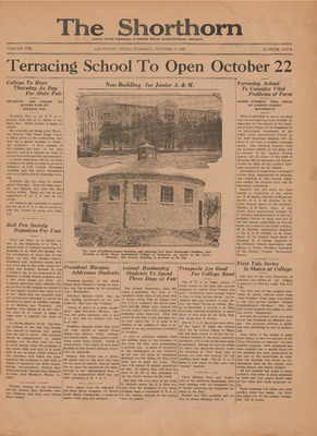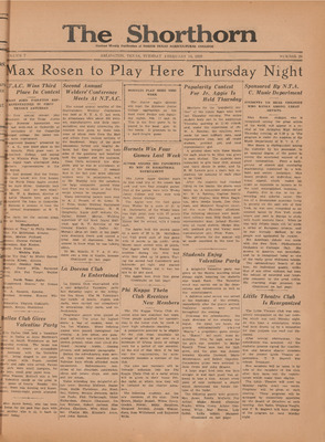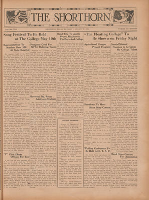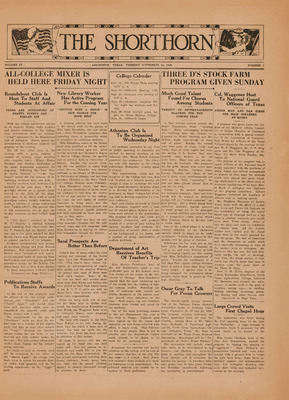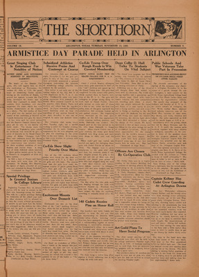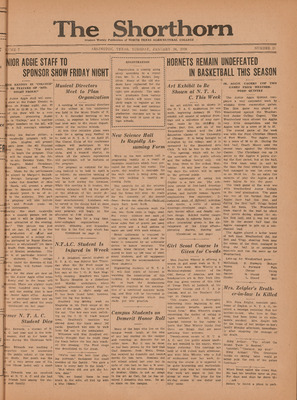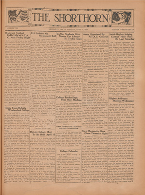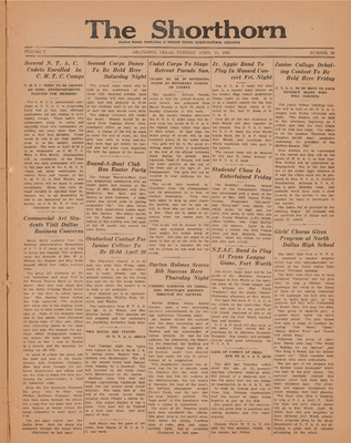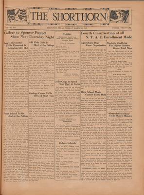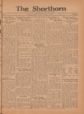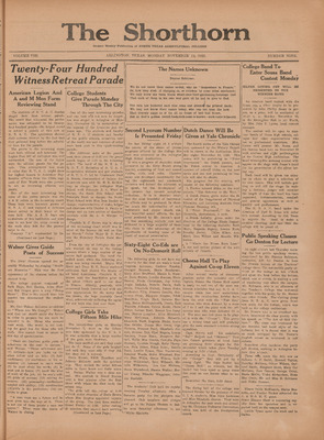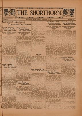 Print issues of The Shorthorn student newspaper, chronicling the history of The University of Texas at Arlington and its surrounding communities. This section contains issues from 1920-1929.