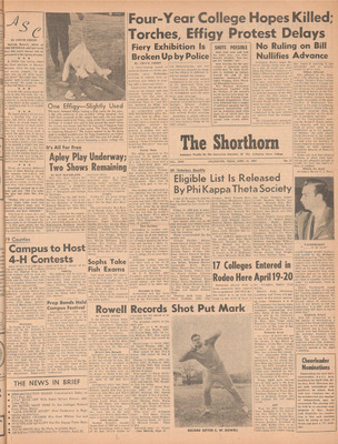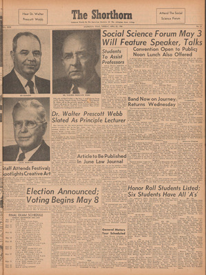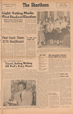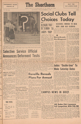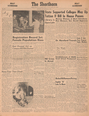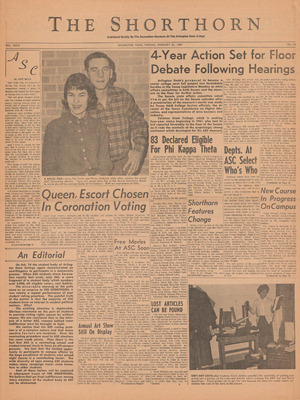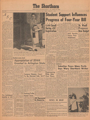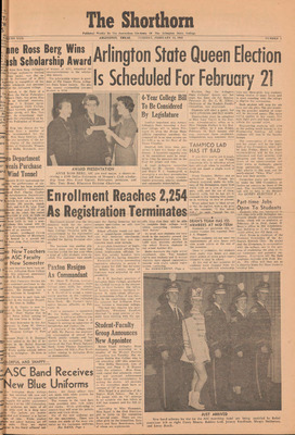 Print issues of The Shorthorn student newspaper, chronicling the history of The University of Texas at Arlington and its surrounding communities. This section contains issues from 1950-1959.