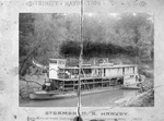 Steamer H. A. Harvey first arrival from Galveston celebration May 1893. People can be seen on the streamer. There is a flag on the front of the boat labelled "H. A Harvey Jr"