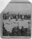 Smith vs. Flatority, boxing match, 02/08/1894. On lookers are watching the boxing match.