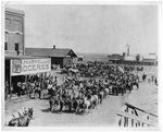 Quanah, Texas - crowds of people on foot and on horseback in the street, Chief Quanah Parker's visit, 1896