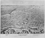 Etching of Fort Worth used by the Texas & Pacific Railway to advertise the city.