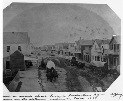 Scene from Indianola, Texas, in 1873 -- Main St., covered wagons