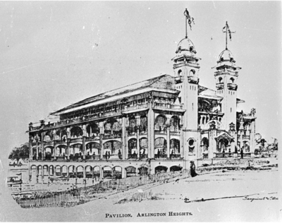Artist's drawing by Sanguinet and Stats, architects of the Arlington Heights Pavilion, undated, circa late 1800s.