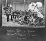 Fort Worth Flower Parade, May 1887 - buckboard with two horses decorated in flowers; 2 women with parasols "Yellow Rose of Texas."