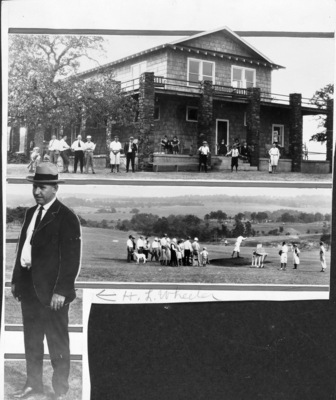 Exterior views of Meadowbrook Golf Course; H.L. Wheeler is figure at bottom, 10/15/1924
