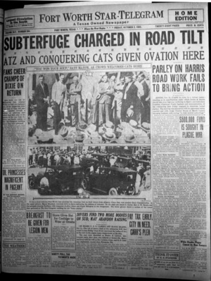 Front page of Fort Worth Star-Telegram dated 10/02/1925 with masthead "Where the West begins"