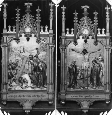 Italian wood carvings, Stations of the Cross #9 and #12, at St. Patrick's Catholic Church, Fort Worth, 04/20/1928