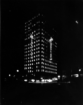 Electric building, Fort Worth Power and Light Co. at night from street level, 06/13/1929