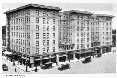 Postcard depiction: Westbrook Hotel, 4th and Main Sts., downtown Fort Worth, ca. 1920s [built 1910]