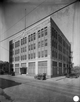 Newspaper buildings; Automobiles; Fire escapes