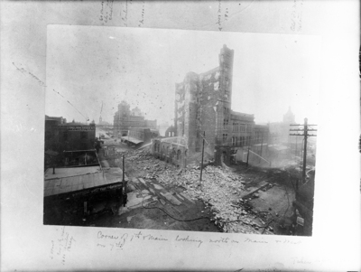 Aviation Building, Fort Worth, Texas. Demolition of old structure at the corner of 7th and Main Streets.