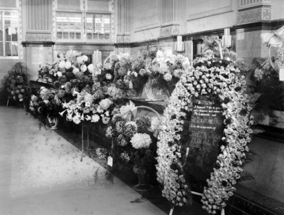 Flower arrangements in the new Texas and Pacific Railway passenger terminal.