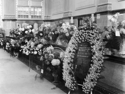 Flower arrangements in the new Texas and Pacific Railway passenger terminal.