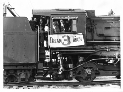 Railroad trains; Wagon trains; Railroad stations