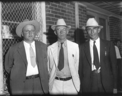 Ardemore police officers: Det. Raymond Shumaker, Police Chief Hale Dunn, and Det. Bennett Wallace, 09/04/1933