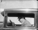 Will Rogers in the front seat of his car.