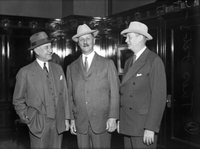 Amon G. Carter with James H. Perkins, chairman of the board of National City Bank of New York (center) and James A. Jackson, vice president of the board of National City Bank of New York.