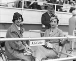 Fans at Arlington Downs Spring Racing Meet, 1935. Mrs. Nenetta Burton Carter, left, and her guest, Mrs. Mary Taub Weil of Houston.