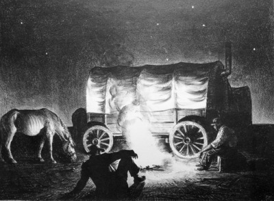 "Texas Nomads" by Peter Hurd, painting on exhibition at Fort Worth School of Fine Arts, 10/31/1935