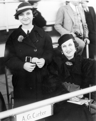 Mrs. Amon G. Carter with daughter Ruth at Arlington Downs racetrack, 11/11/1935