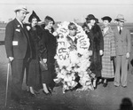 Arlington Downs Will Rogers Memorial Handicap; left to right Charles Hainsworth, Mrs. Hainsworth, Mrs. Dudley Golding, Johnny Longden, Mrs. Joe Wolken, Mrs. Ben Koppel, and Nat D. Rogers