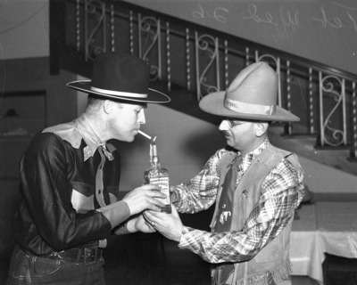 R. S. Bishop, left, and Lester W. Freedheim at Fort Worth Advertising Club's frontier dance at Blackstone Hotel, 02/26/1936