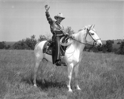 Billy Rose on horse called Hornet, owned by Bob Galen, 04/15/1936.