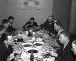 Texas jailhouse dinner; seated left to right: Jack Gordon, Wilburn Davis, Ed Hanifan (secretary to Rose), Ned Alvord (press agent), Billy Rose, Sheriff Carl Smith, Chief Deputy W. A. Fitts, Office Deputy Walker Overton, and Cullum Greene, 04/27/1936