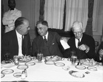 Executives of the auto industry visiting in Fort Worth: B. E. Hutchinson of Detroit, left, talking to R. E. Harding, president of Fort Worth National Bank, with A. L. Shuman on right, at Fort Worth Club, 05/06/1936