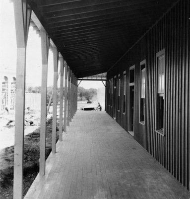 Porch of West Texas Chamber of Commerce building on Fort Worth Frontier Centennial grounds.
