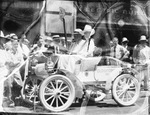 1910 Oldsmobile with Amon Carter, right, and William Monnig in the car; A.L. Shuman standing at Mr. Monnig's right.