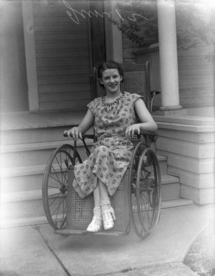 Mary Elizabeth Runkles of San Angelo poses in wheelchair, polio patient, 06/12/1936