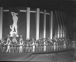 Fort Worth Frontier Centennial, Casa Manana production with dancers in chorus line on stage, 07/1936