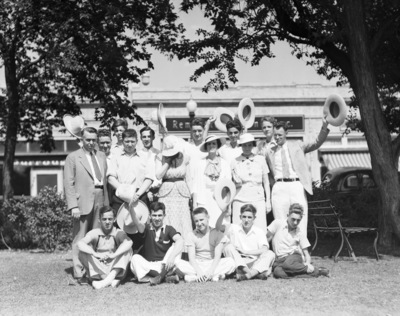 Newsboys of the Reading Eagle, Pennsylvania newspaper, and their associates attending rehearsals at Frontier Centennial, Fort Worth, 07/1936