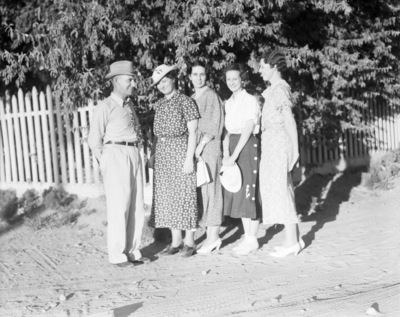 Group of visitors posing for photo at the Pecos Rodeo, 07/1936