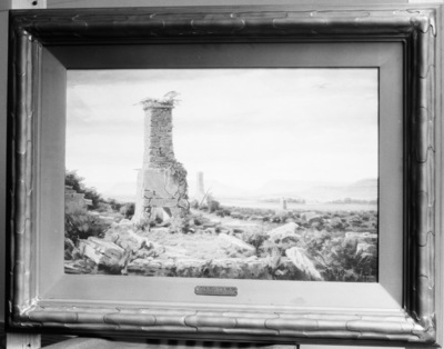 Artist Henry W. Caylor painting "Nature Reclaiming Her Own" on exhibit at the West Texas Chamber of Commerce building, Fort Worth's Frontier Centennial, 07/09/1936